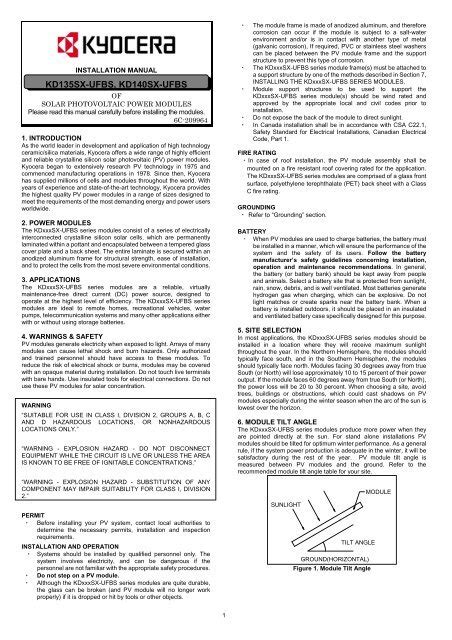Presently you are looking regarding an Kyocera Solar Panel Installation Manual example that will we provide here within some type of document formats like as PDF, Doc, Strength Point, as well as images that will will make it simpler for you to create an Kyocera Solar Panel Installation Manual yourself. For a better look, you are able to open several examples below. Each of the examples about Kyocera Solar Panel Installation Manual on this web site, we get from many sources so you could create a better record of your own.When the search you acquire here does not match what you are searching for, please use the lookup feature that we have got provided here. You will be free to download anything at all that we provide in this article, expense cost you typically the slightest.