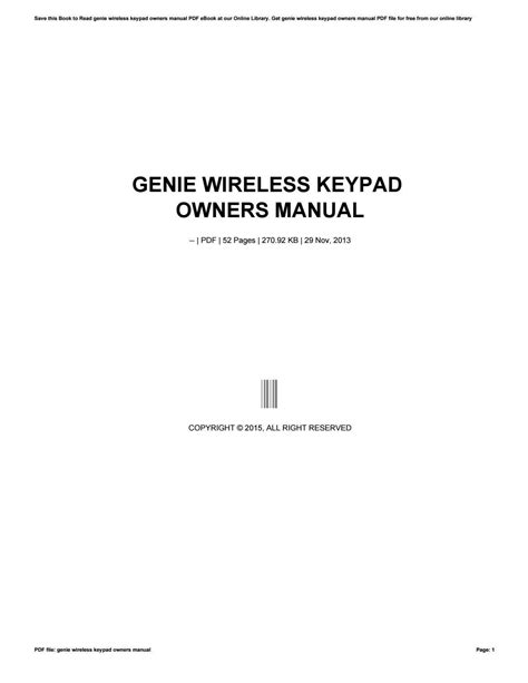 Everybody knows that reading Genie Wireless Keypad Owners Manual is effective, because we can get a lot of information in the reading materials. Technologies have developed, and reading Genie Wireless Keypad Owners Manual books could be easier and much easier. We can read books on our mobile, tablets and Kindle, etc. Hence, there are several books coming into PDF format.Listed below are some websites for downloading free PDF books to acquire just as much knowledge as you wish. These days everybody, young and aged, should familiarize themselves with the growing eBook industry. Ebooks and eBook viewers provide substantial benefits more than traditional reading. Ebooks cut down on the make use of of paper, as strongly suggested by environmental enthusiasts. Right now there are no fixed timings for study. There is no question of waiting-time for new editions. Right now there is no transportation in order to the eBook shop. The books in an eBook go shopping can be downloaded quickly, sometimes for free, occasionally to get a fee.